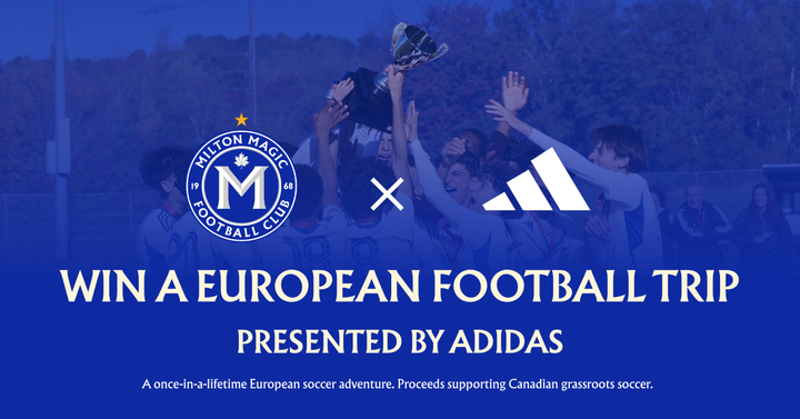 Milton Magic FC is proud to launch the Milton Magic FC x Adidas Travel Adventure, a sweepstakes initiative presented in partnership with adidas. This exciting opportunity gives supporters the chance to win a once-in-a-lifetime European football experience while directly supporting the growth and development of local grassroots soccer.